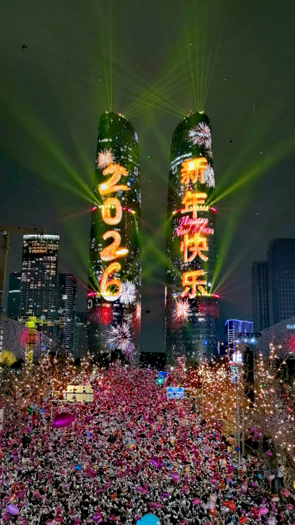 随着时间逼近零点,全场目光聚焦于天府双塔。巨大的数字开始跳动:“5、4、3、2、1——2026,新年快乐!”大家与身旁的亲友甚至陌生人相视而笑,共同定格2026年的第一个珍贵瞬间。