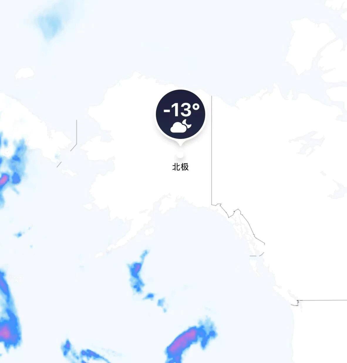 看到网友的“北极”气温截图,大多是苹果手机自带的天气功能。