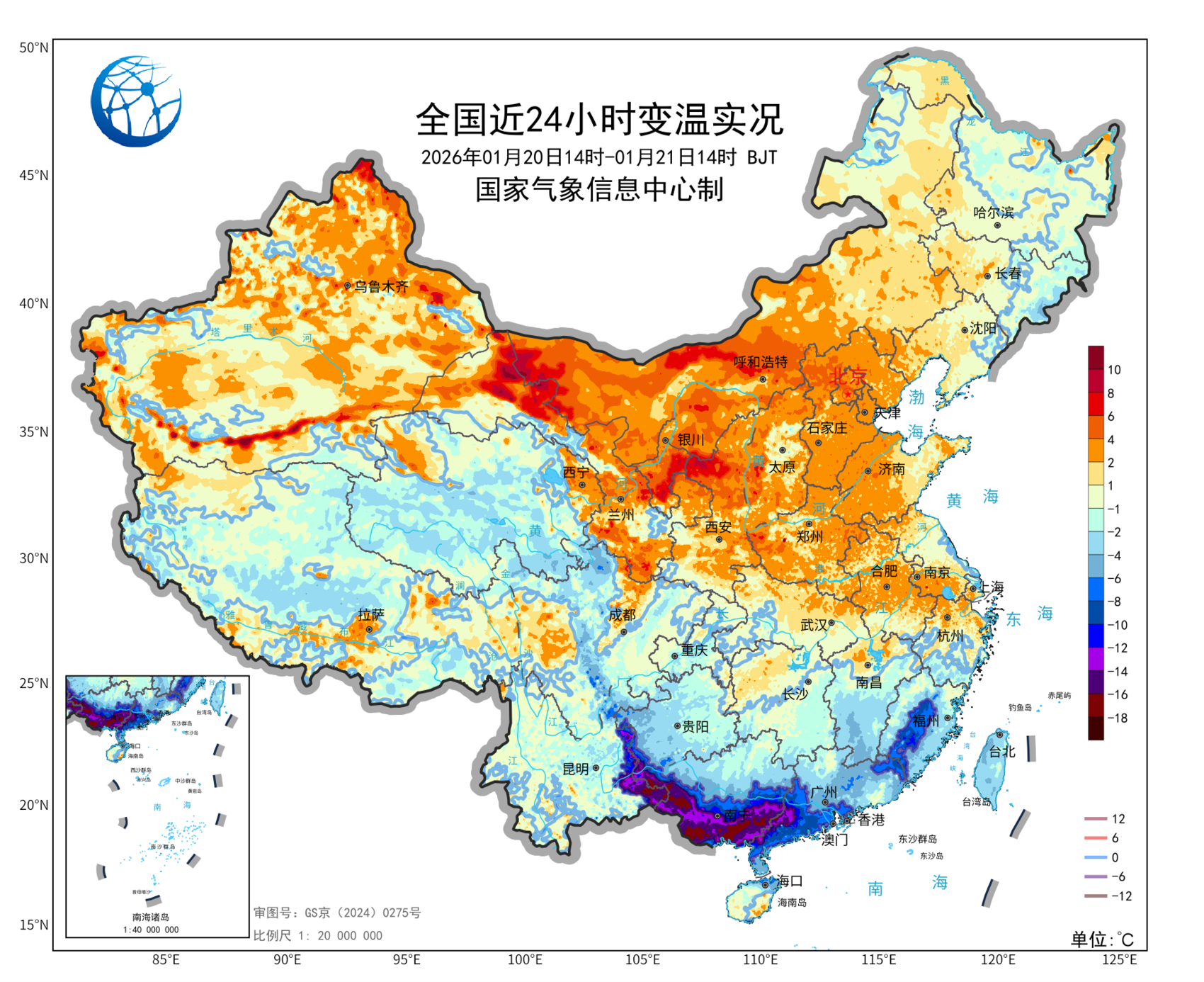 随着寒潮影响接近尾声,明后天升温范围将扩展至全国多数地方,气温将逐渐回升至正常或偏高状态。最高气温0℃线将重新回到华北北部,10℃线将来到长江中下游地区,24—25日长江以南大部地区最高气温将升至15℃以上,江南南部和华南还将超过20℃,暖意回归。