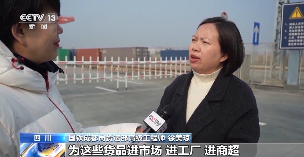 国铁成都局成都铁路物流中心班列负责人 王奕:班列从开始开通就很忙,尤其是今年开年就更加忙了,货物都能够即装即走。