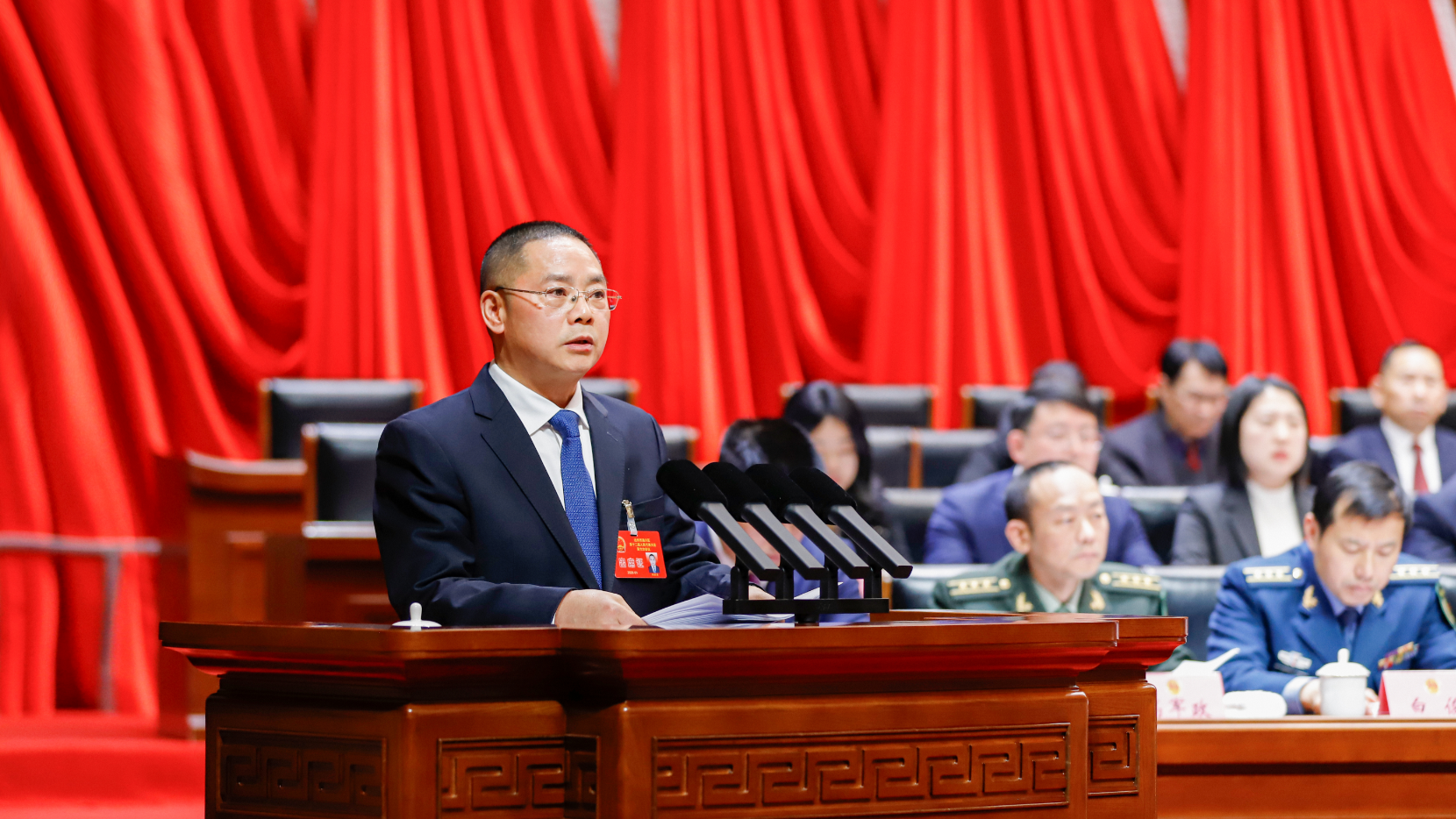 代表们认真聆听工作报告
