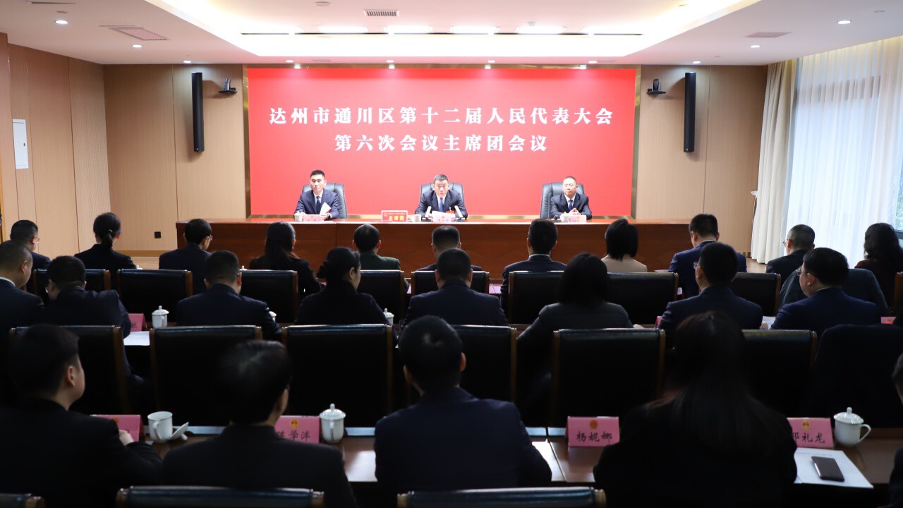 1月29日,达州市通川区第十二届人民代表大会第六次会议主席团第四次会议召开。区委书记李祝荣主持会议,区人大常委会主任何世清、区人大常委会党组书记牟军出席会议。