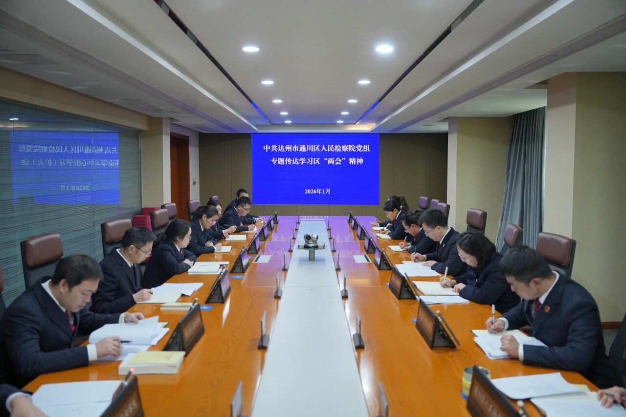 1月29日,达州市通川区人民检察院召开党组理论学习中心组专题学习研讨会,传达学习贯彻达州市通川区第十二届人民代表大会第六次会议及政协达州市通川区第十一届委员会第六次会议精神。