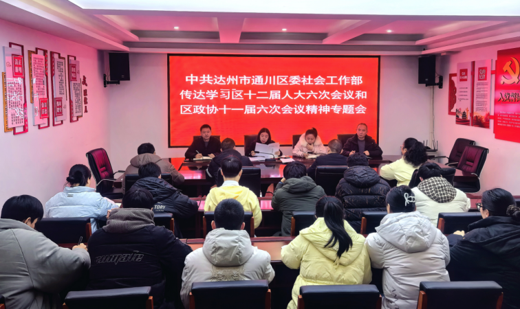 1月29日,通川区委社会工作部召开专题会议,传达学习区十二届人大六次会议和区政协十一届六次会议精神,研究贯彻落实举措。