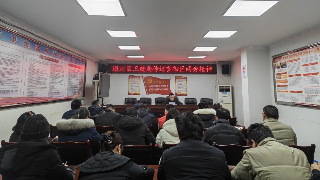 1 月 29 日,通川区应急管理局召开全体干部职工大会,传达学习通川区“两会”精神,研究贯彻落实措施,动员全局上下以更高标准、更严要求、更实作风,防范化解重大安全风险,为通川发展提供坚实的安全保障。