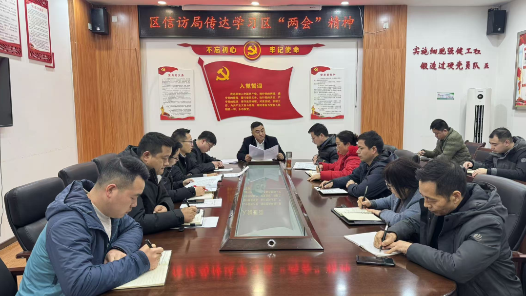1 月 29 日,区信访局召开全体干部职工会议,专题传达学习区“两会”精神,研究部署贯彻落实工作。