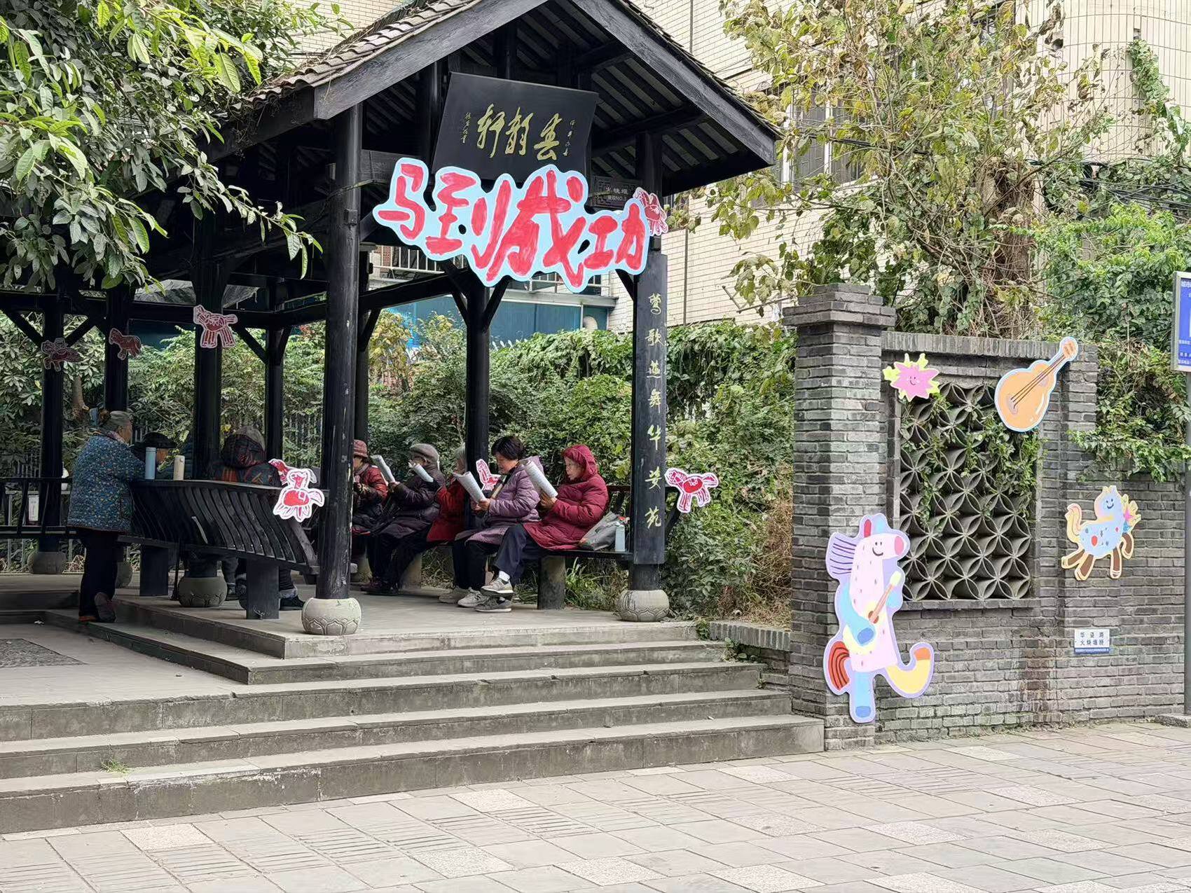 社区内的老年合唱团,旁边融入小马弹琴元素。刘小乙 供图