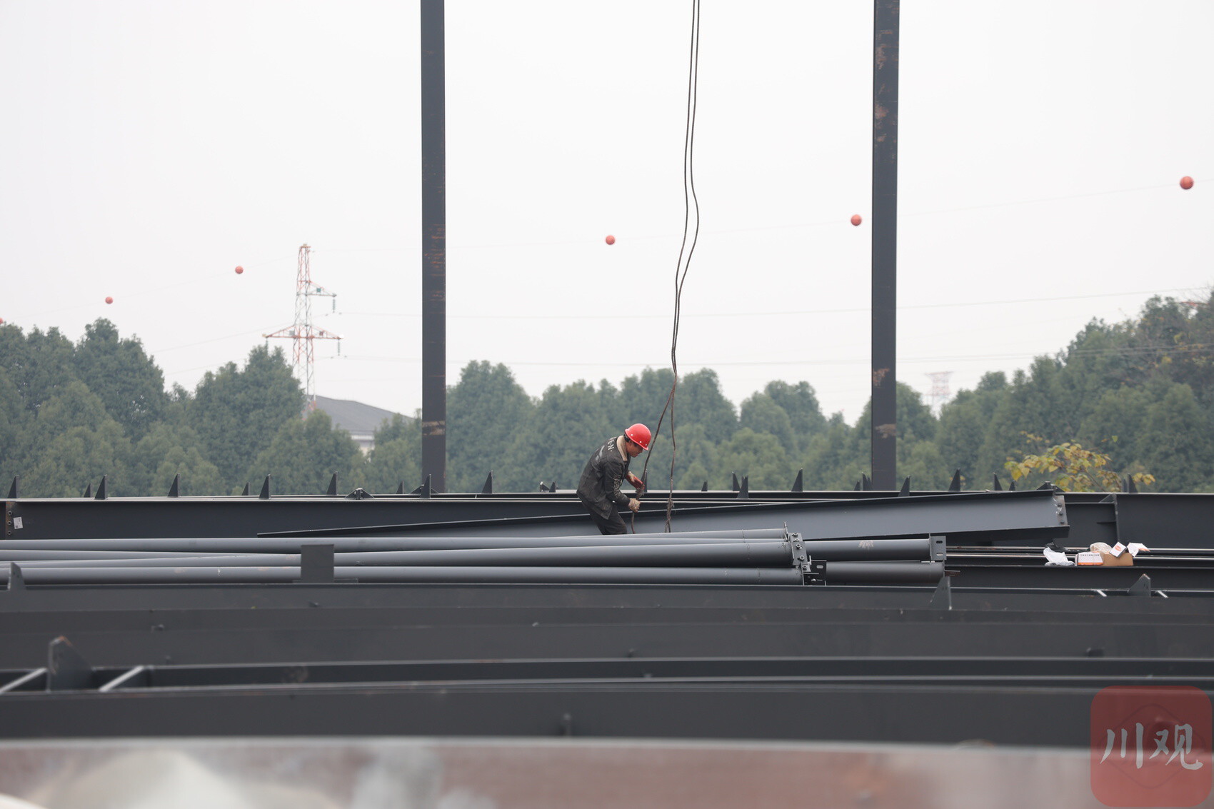 工作人员正在小微产业园进行器材装吊。刘怡 摄