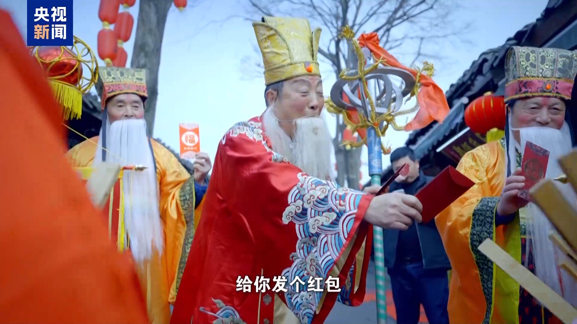 “春节老人”扮演者 张忠和:春节好!发红包啦!给你发个红包,希望你马到成功、马年大发!