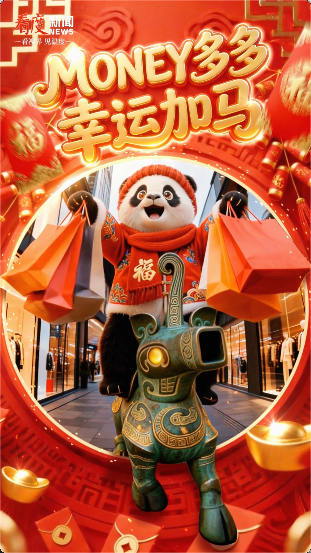 当千年的青铜骏马遇见成都毛绒绒的大熊猫,当古老传说踏上现代街巷,这场穿梭时光的Citywalk将整座成都变成了他们送福的画卷,在城市里踏下吉祥的纹路。