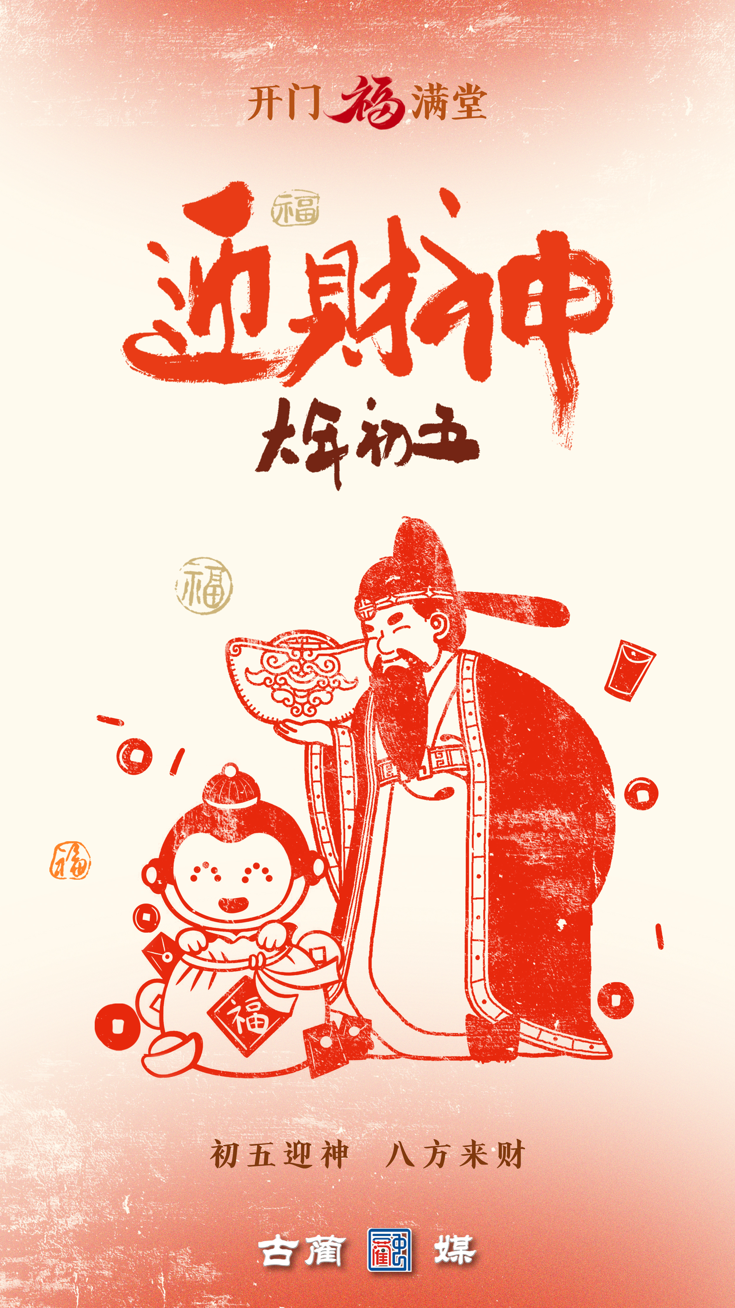 年初五,破五,迎财神。扫去穷气,打开门窗——风带喜、水带财、路带四方好买卖。八方来财,稳稳接住。