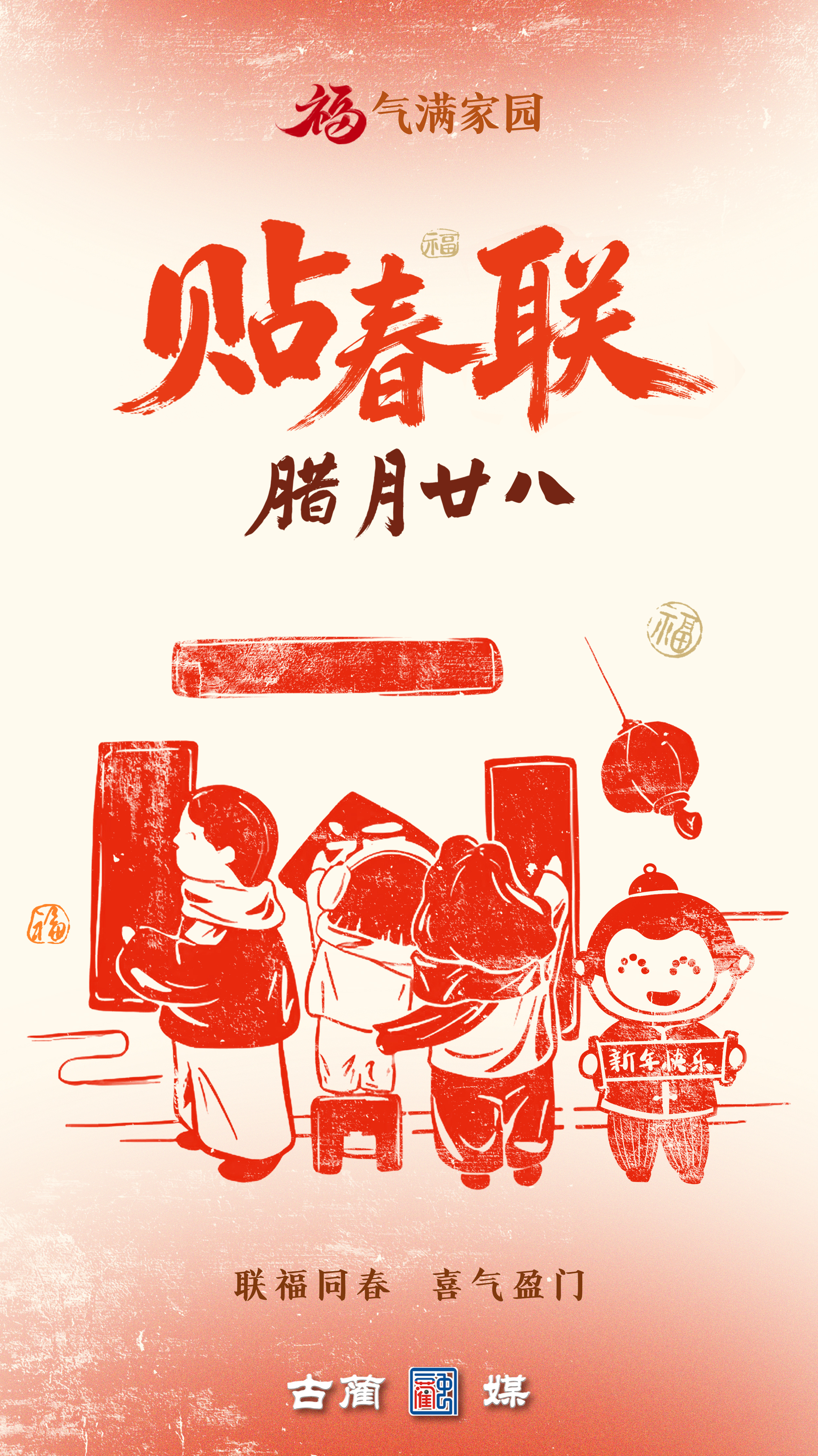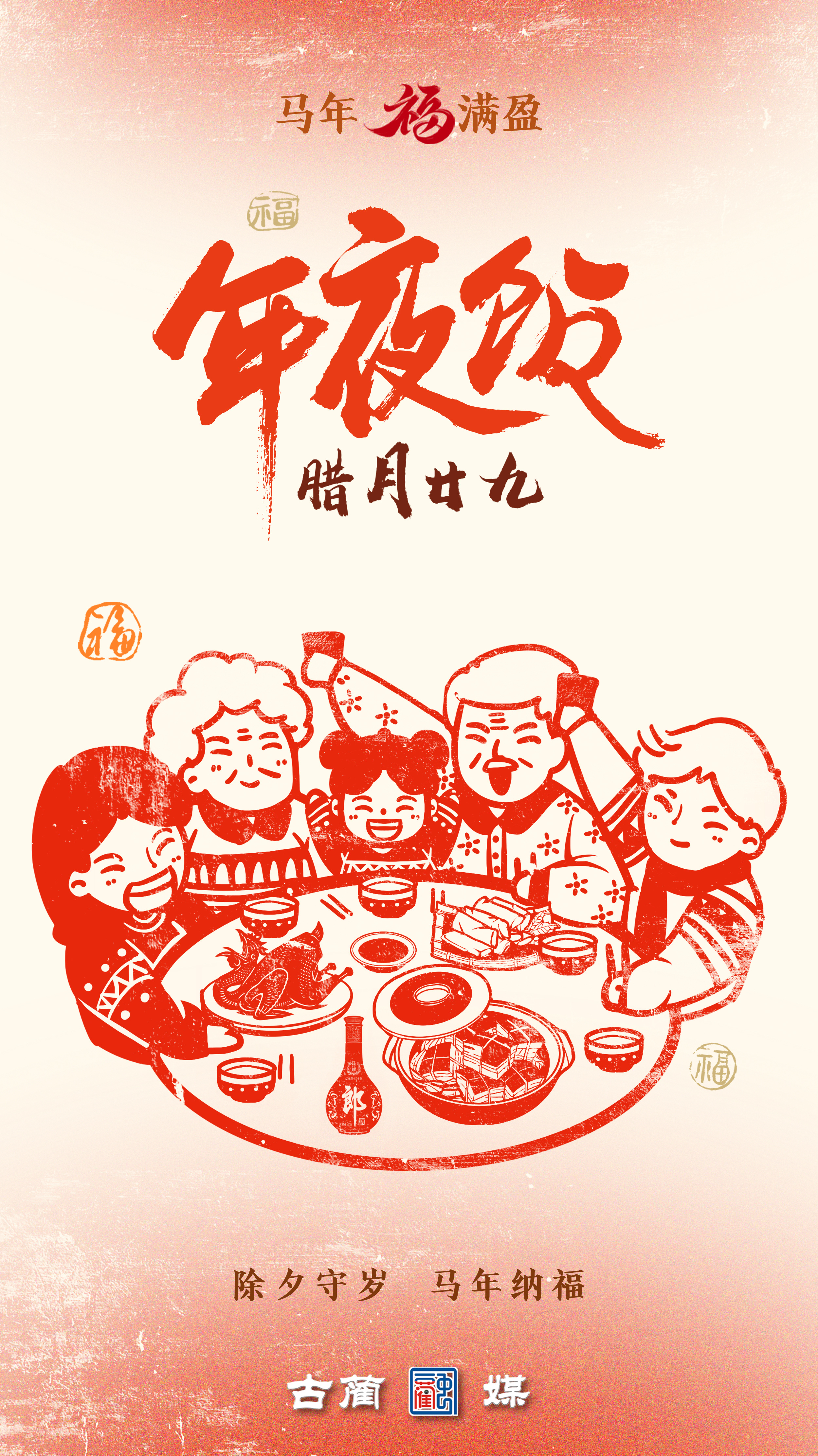 年,是中华文化的浓缩,是中国人血脉里抹不去的心结。中国年俗,有说不完的故事,道不尽的风情。春节,这场一年中最隆重、最热烈的节日仪式,曾藏在一张窗花、一副春联、一桌年夜饭里。岁月流转,有些年俗渐渐淡出日常,但那份对年的期盼与郑重,从未走远。今年新春,古蔺融媒以剪纸为笔,以红纸为墨,用古老而质朴的民间技艺,绘制了这组年俗系列海报。从春联挂门到迎灶纳福,从走亲访友到送穷迎新——我们用镂空的影、层叠的光,把那些被时光稀释的仪式感,重新描浓。让我们一起,在过年的气氛里,找回传统文化里那口温热绵长的“年味儿”。
