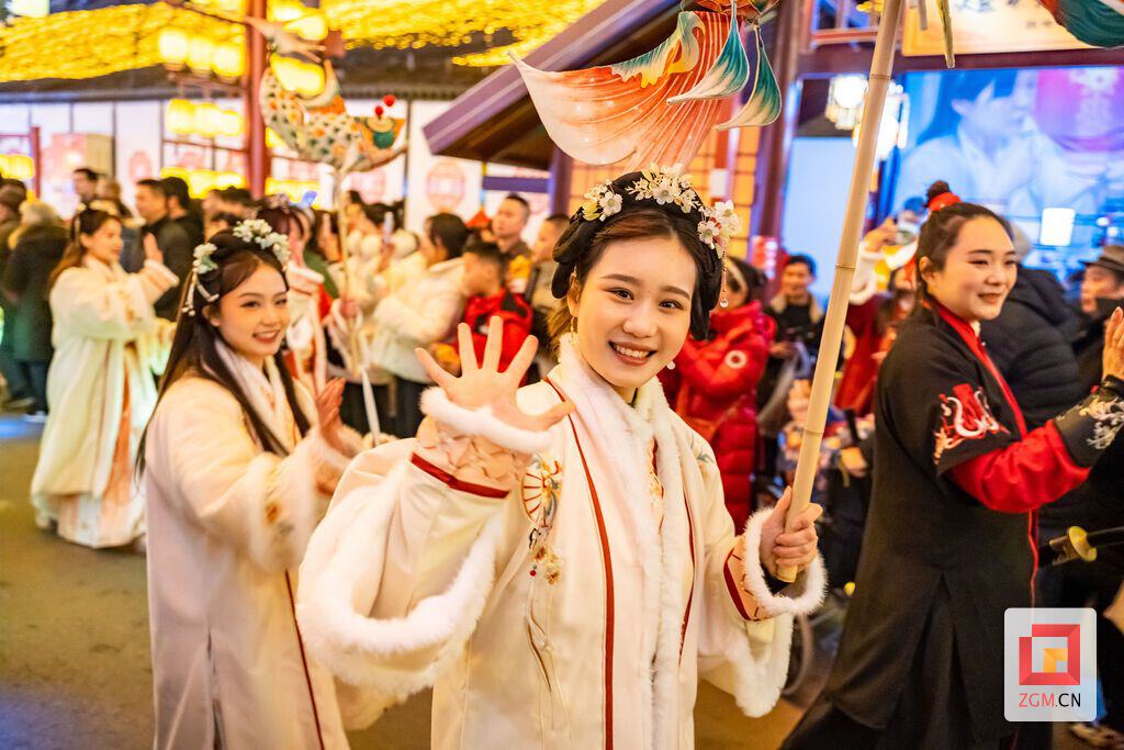 年轻人爱上自贡,因为这里“有得玩”。过去的年,无非是吃饭、打牌、看电视,坐不住也留不下。现在来自贡就不一样了,整座城市都变成了游乐场。老街里冒出有趣的集市,巷子深处藏着新潮的店铺,白天有逛头、晚上有看头。灯会也不再只是远远地望,而是可以走进去、穿过去、跟它互动。每一步都能遇见新鲜。可玩的地方多了,脚步自然就慢下来了;脚步慢了,心就留下来了。而且自贡特别“出得了片”——流光溢彩的灯组随便一站就是大片,老街的灯笼挂满屋檐,穿汉服走在青石板路上,根本不用修图。手机里装满九宫格,朋友圈发完还有存货。出得了片,就值得分享;值得分享,就值得再来。青春需要撒欢儿的地方,也需要被看见、被记住,自贡都满足了。