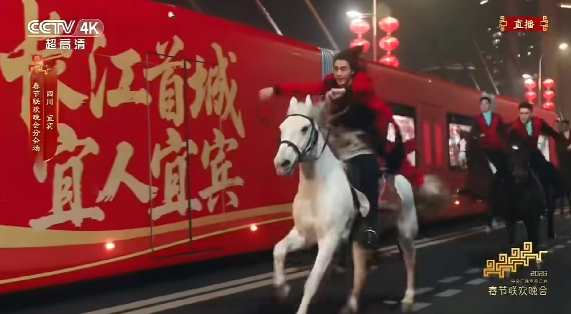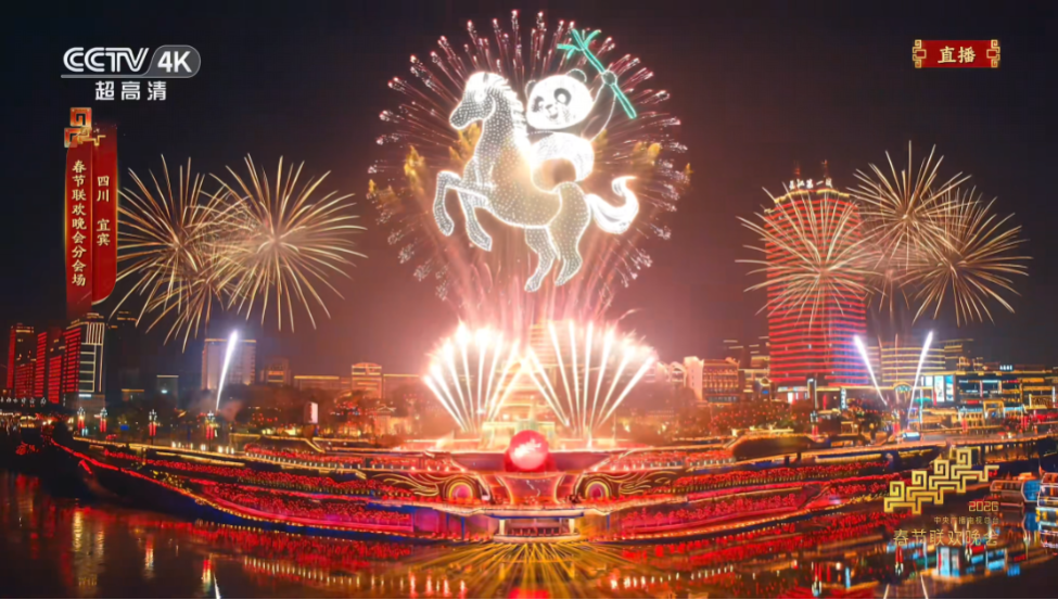 工业级无人机腾空而起,以一场名为“长江首城·骐骥驰骋”的光影大秀,拉开2026年总台春晚宜宾分会场迎新序幕”。机器狗、机器人、AI特效生成的熊猫梦幻联动,不仅是一场视觉盛宴,更是“四川智造”在“十四五”期间科技创新实力的一次精彩亮相。