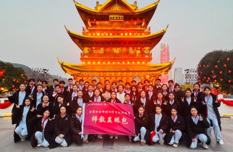 舞台光鲜背后,是无数日夜的打磨。排练从深夜持续到清晨,合江门广场风大天冷,但没有人退缩。王茗和同学们一遍遍走位、一次次排练,导演要求严苛,她们就练到满意为止。“有一段群舞要在三江交汇背景前完成,导演说要跳出‘江水奔流’的气势。”王茗回忆,为了这个“气势”,她们在寒风中跳了无数遍,直到每一个动作都融入江水的节奏,直到每一次回眸都映出奔涌的力量,直到导演喊出那声——“对了,就是这种感觉!”