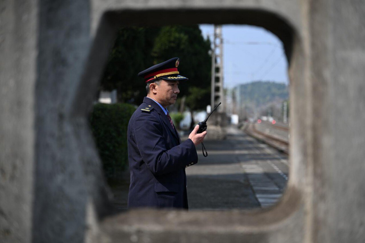 临江寺站站长李东正在通过对讲机传达指令。江锐 摄