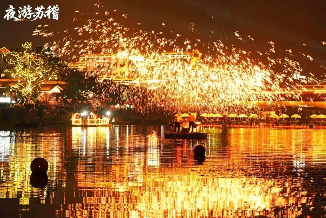 夜游苏稽特色项目“打铁花”
