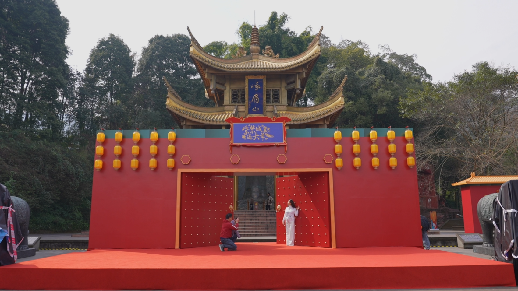 来看一场“IP跨界”。除夕当天,“紫禁城里过大年·走进峨眉山”活动在峨眉山脚下拉开帷幕。红墙金瓦的紫禁城元素与峨眉山的自然景观相映成趣,勾勒出“一山一宫、古今相映”的独特意境。