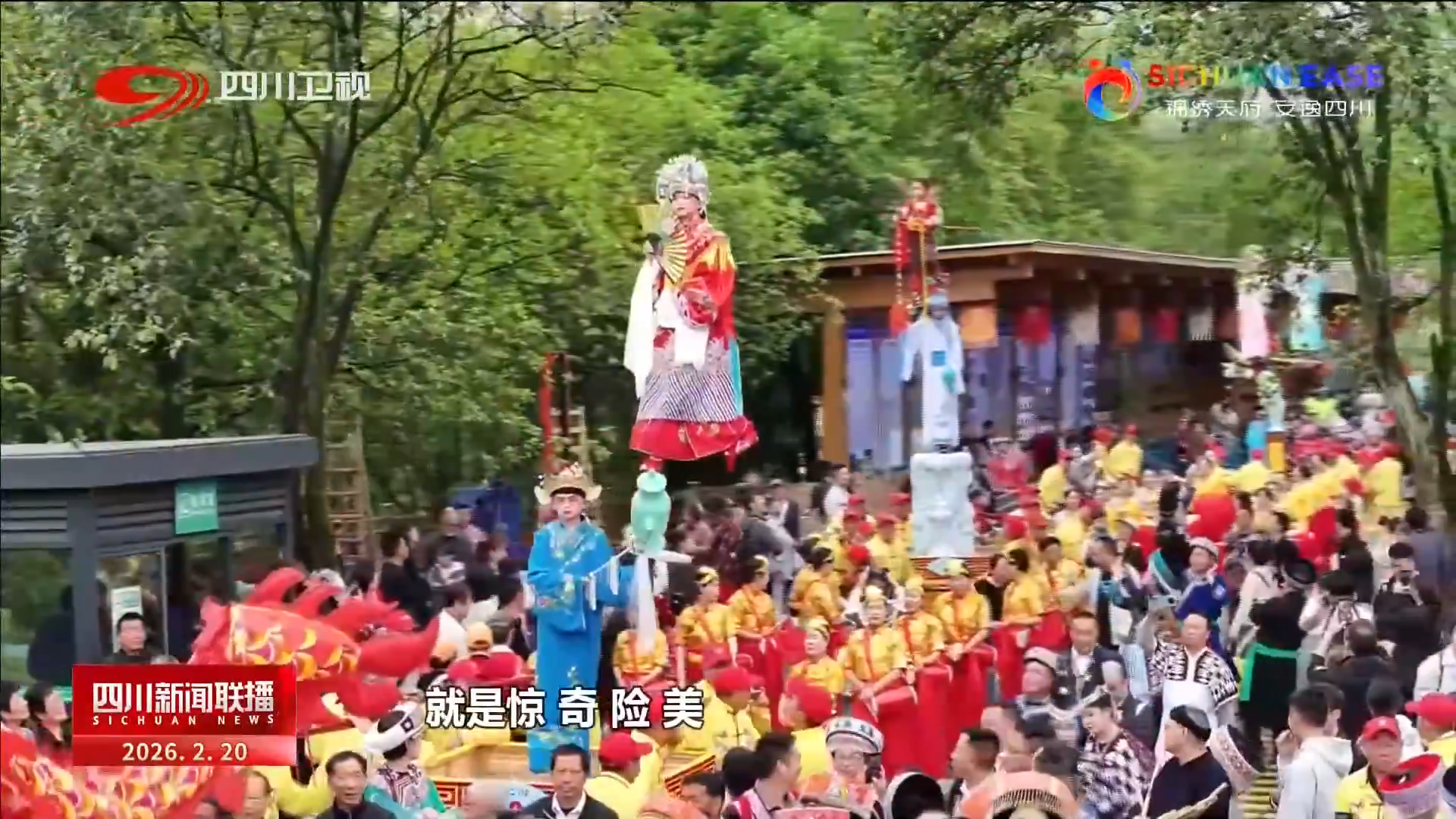 锣鼓喧天,人潮涌动。在宜宾兴文县大坝苗族乡,一场盛大的“大坝高装”巡游正在热闹上演。就在四天前的除夕之夜,这项传承近三百年的国家级非物质文化遗产,正是以这样惊艳的姿态亮相央视马年春晚宜宾分会场,让全球观众感受到了川南民俗的火热与魅力。