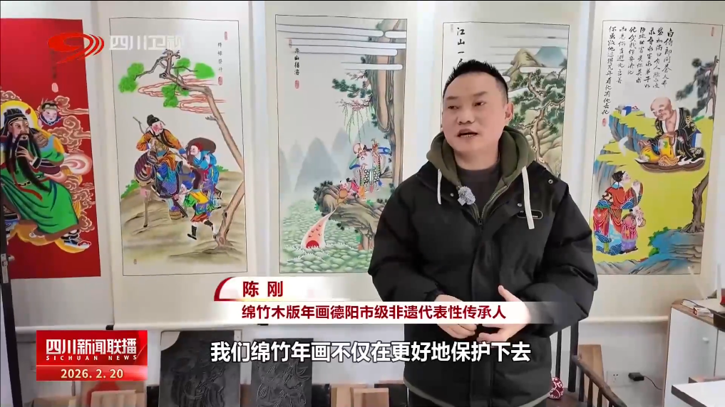 绵竹木版年画德阳市级非遗代表性传承人 陈刚:我们绵竹年画,不仅在更好地保护下去,我们现在也开发了很多小的礼品,比如说抱枕、杯垫、小画框、扇子之类的,我们希望继续再传承下去,希望大家把这份福气带回家。