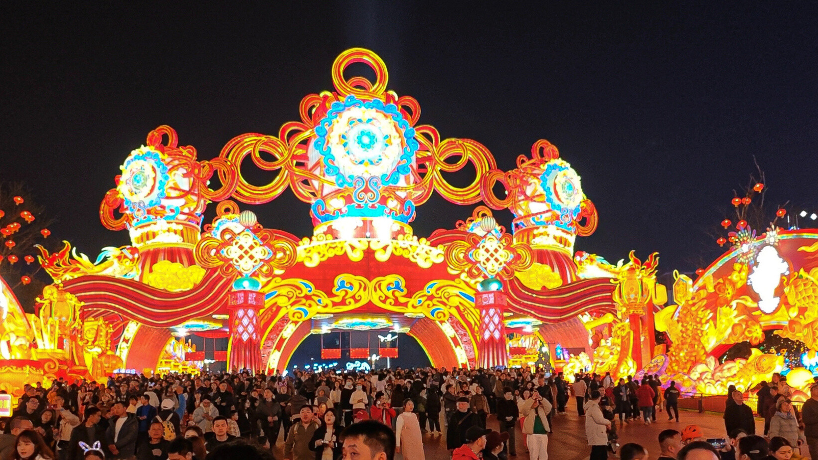 自贡灯会入口处人流如织。图据自贡灯会