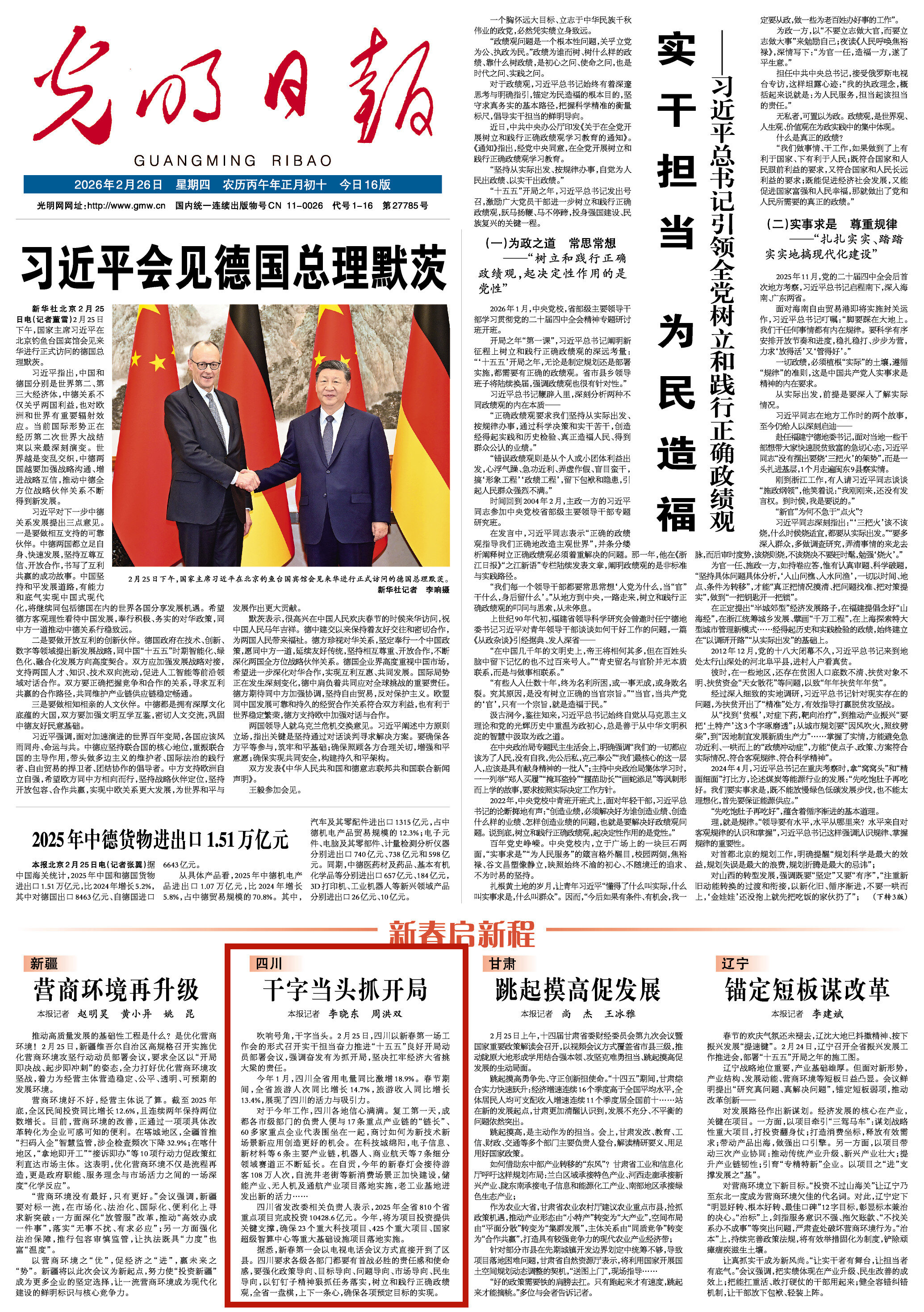 吹响号角,干字当头。2月25日,四川以新春第一场工作会的形式召开实干担当奋力推进“十五五”良好开局动员部署会议,强调奋发有为抓开局,坚决扛牢经济大省挑大梁的责任。