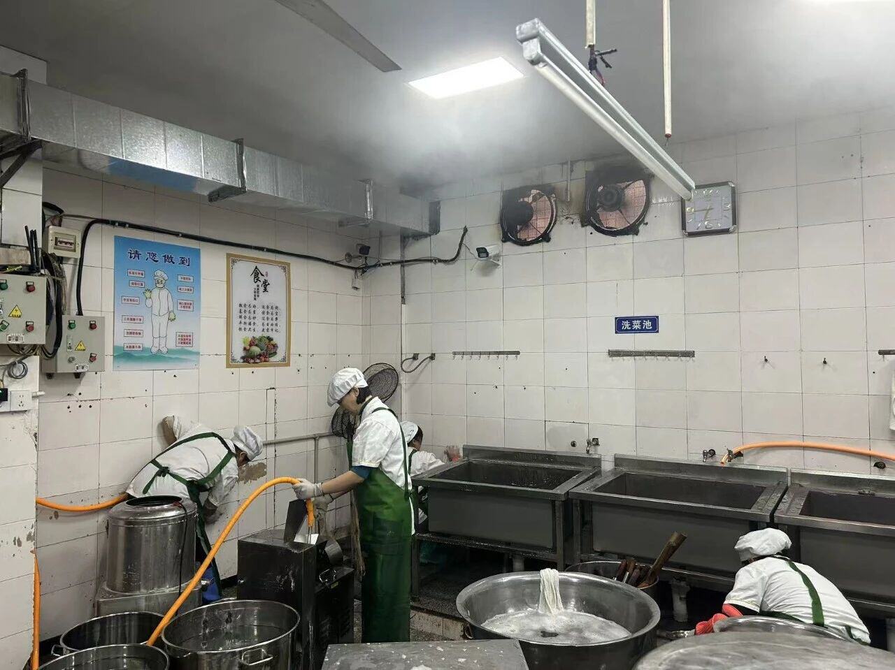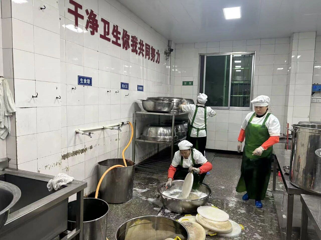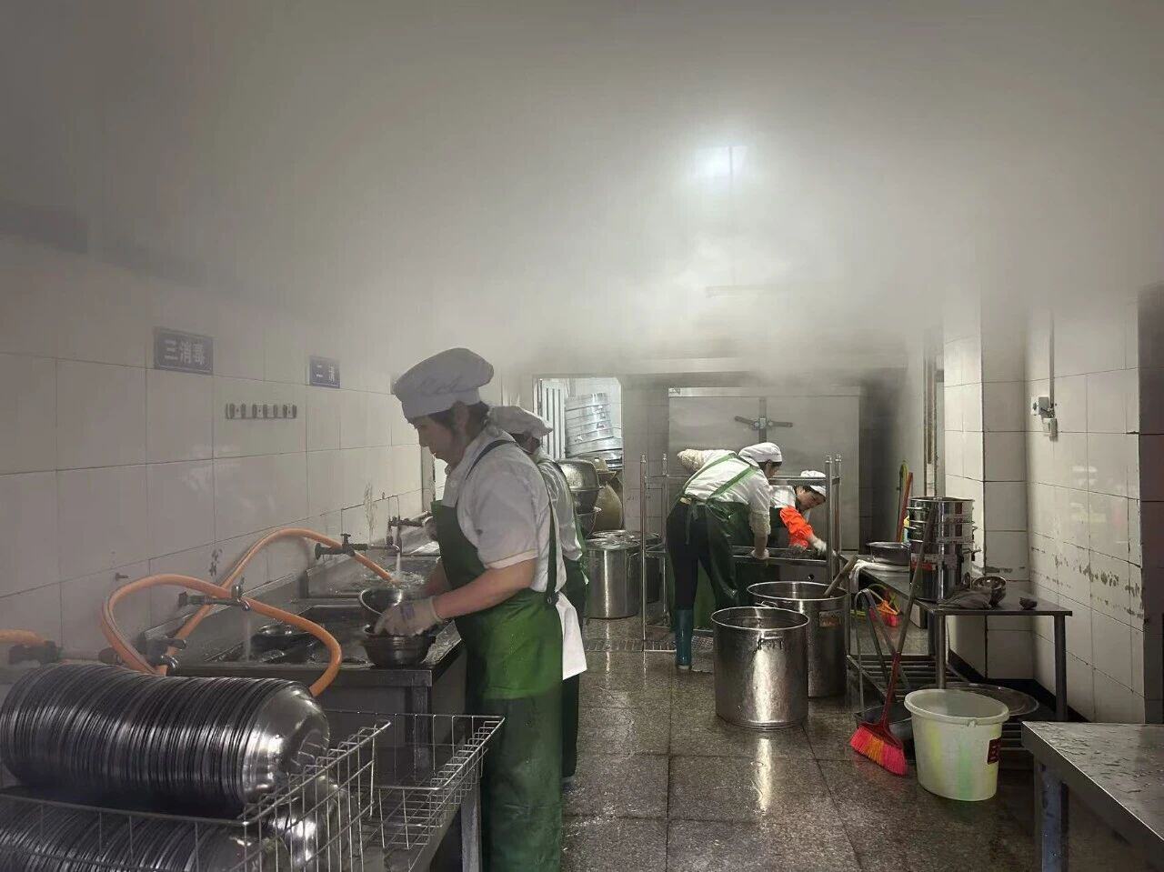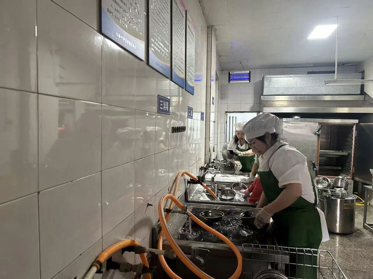 体卫艺保洁团队和食堂工作人员对校园开展深度清洁与专业消杀。教室、办公室、走廊、卫生间、食堂、功能室等区域全面清扫,清除卫生死角;对门把手、课桌椅、扶手、水龙头等高频接触部位重点消毒;食堂严格执行食品安全规范,彻底清洗消毒厨具餐具、排查食材库存、规范留样流程,从业人员持证上岗、岗前培训到位,全力保障师生饮食安全与身体健康。