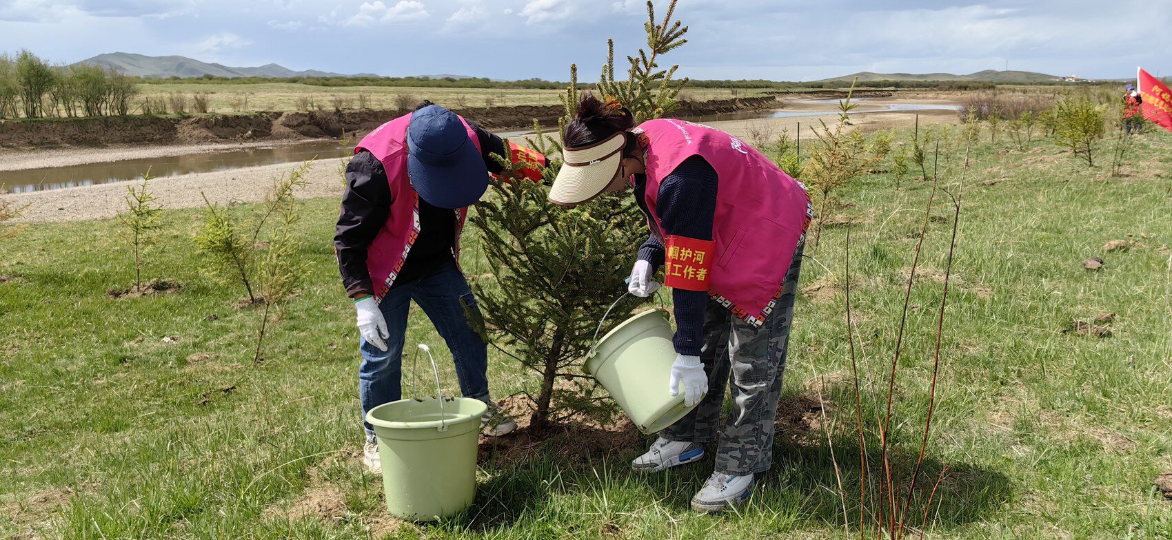 阿妈啦黄河巾帼志愿巡河护河队在植树(资料图)。受访者供图