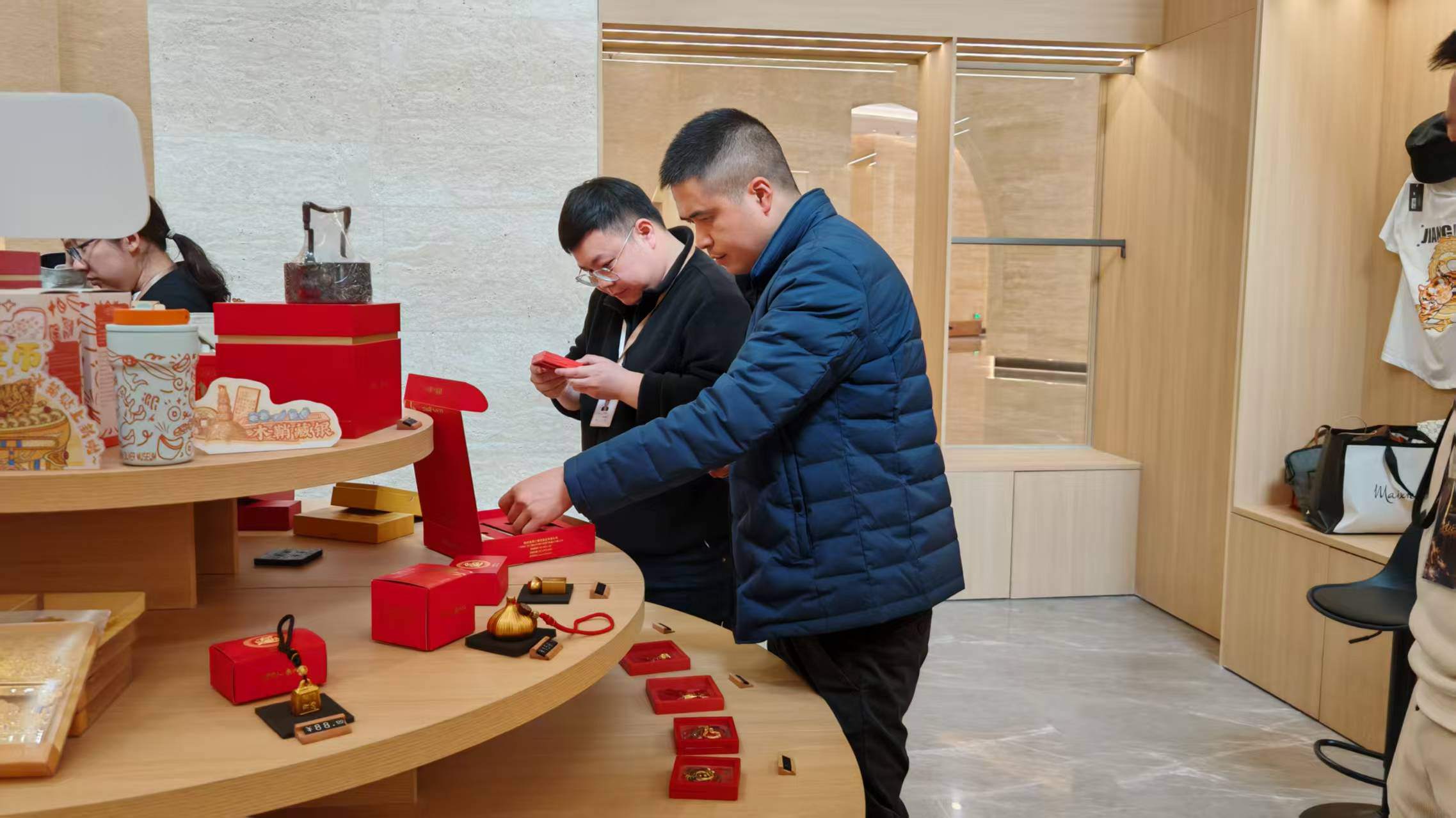 游客选购文创产品。