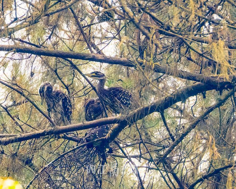 2024年,监测人员在石板河景区的同一棵马尾松树上,再次监测到海南鳽筑巢的身影,这一次,它们成功繁殖出3只幼鸟,林间又添新的生机。