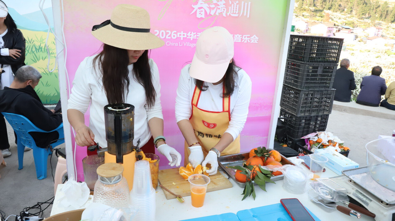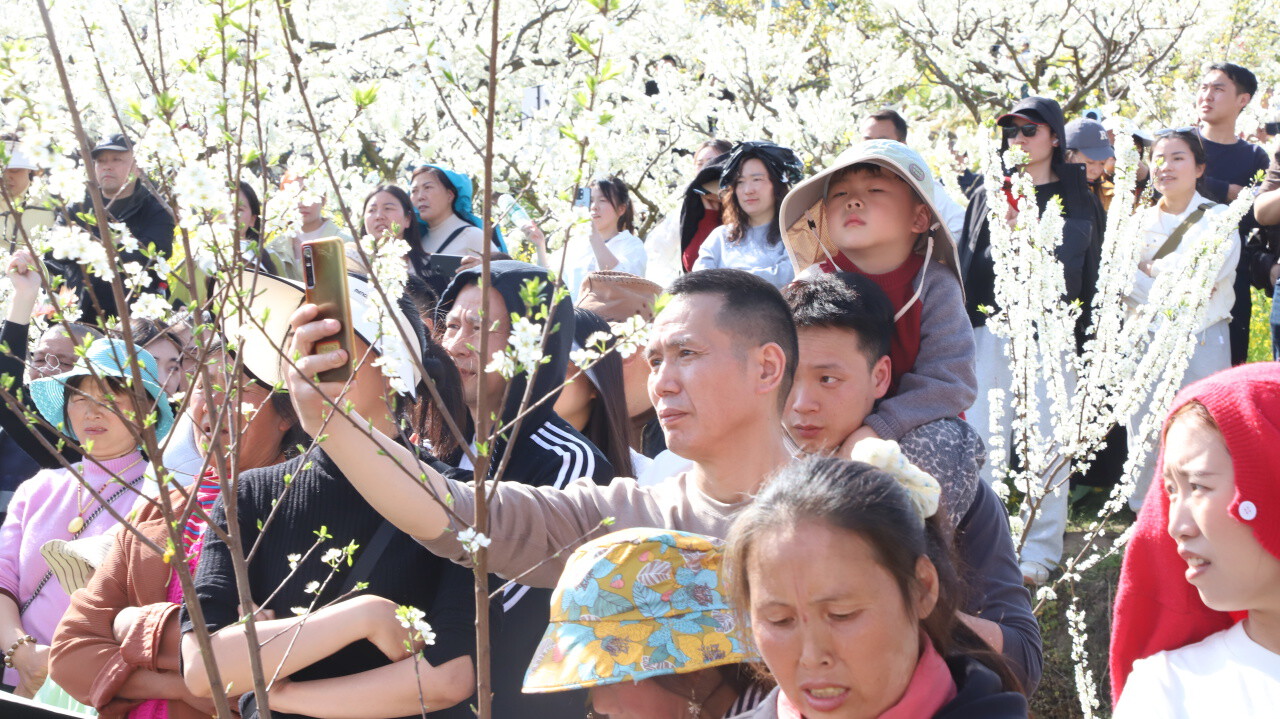 花香伴音浪,消费添活力。活动现场精心布置了花海下午茶、花海火锅宴、花海集市等配套区域。游客可在李花掩映的竹桌椅旁品茶、尝主题甜品;也可在现场品尝通川知名火锅商家烹制的热辣美食;集市上,特色农产品、文创手作琳琅满目。此外,柑橘采摘体验和免费摄影也吸引了众多游客参与,留下春日里的美好瞬间。