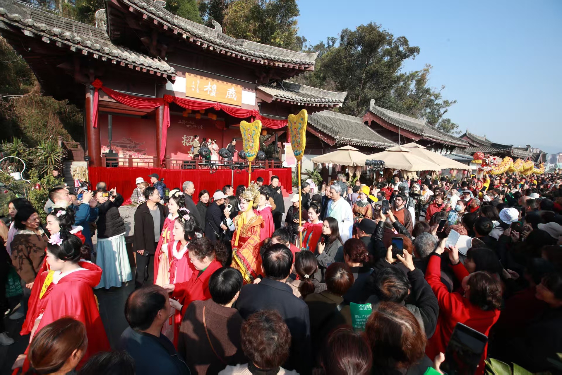 9时33分,随着“利州都督武士彟”的一声高喝与铿锵锣响,“唐风雅市”在凤街正式开市。