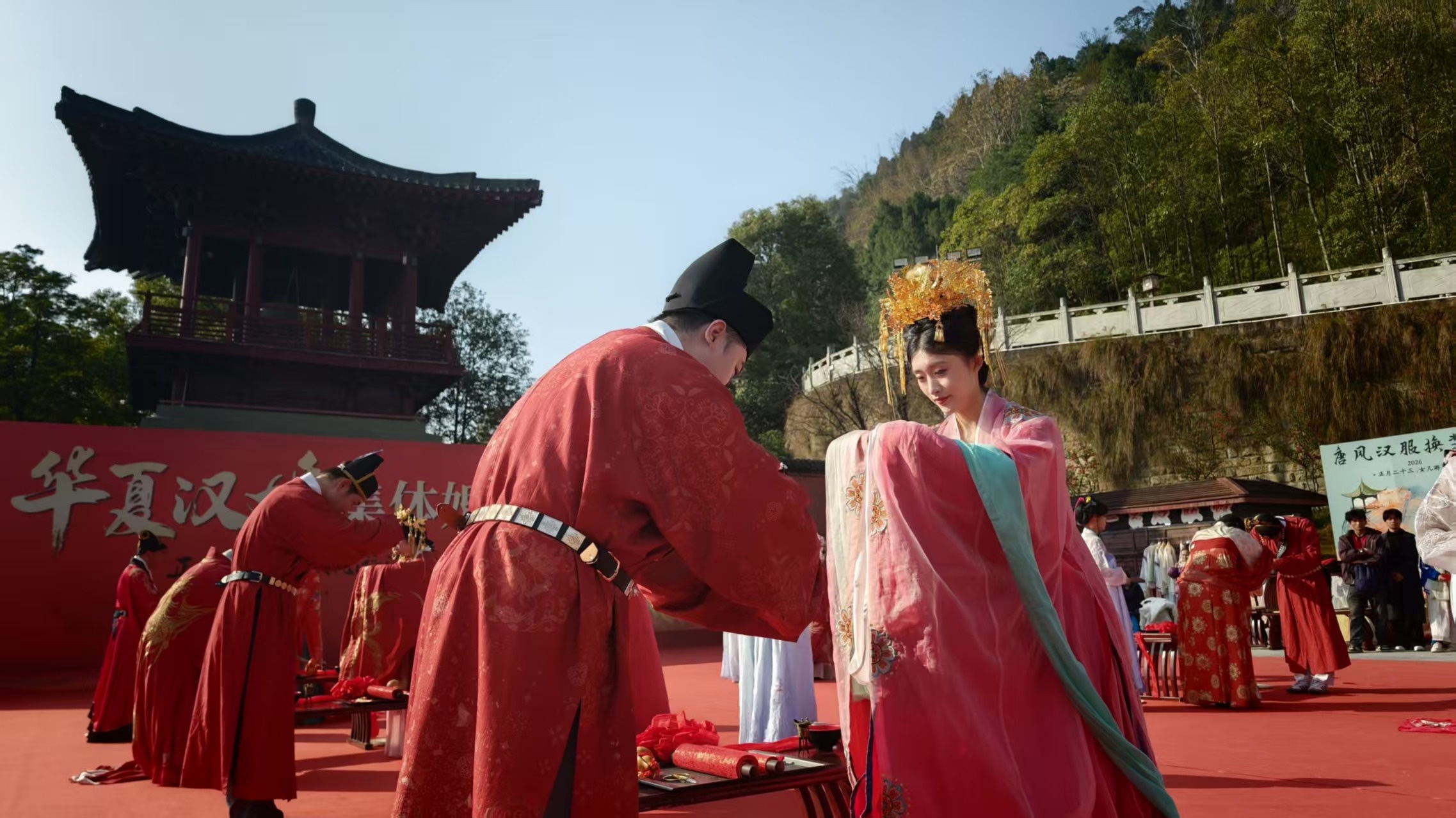 古老的誓言在春风中久久回荡,这场华夏汉婚集体婚礼,不仅是新人们铭记誓言的独特平台,还以鲜活的方式,将传统婚俗中蕴含的敬重、盟约与美好祝福,深植于每一位见证者心中。