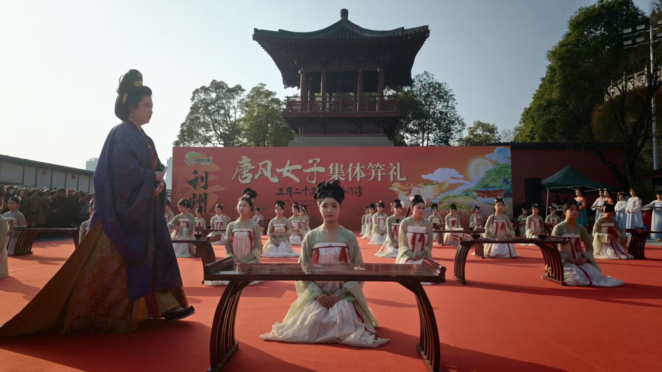 41位身着唐风襦裙的女子款步登场,神情庄重。司礼者唱礼声沉稳有力,正宾净手、执簪、加笄。发髻绾就,一枚发簪稳稳插入——古老的“及笄礼”在嘉陵江畔重现。
