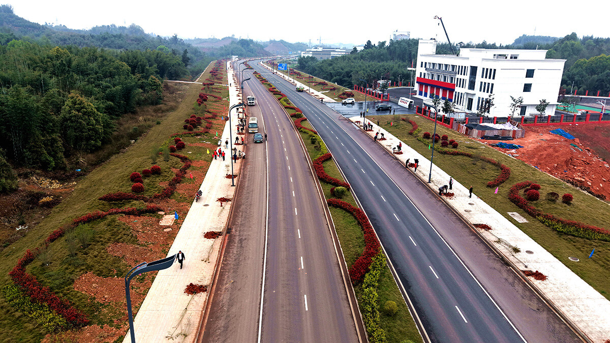 犍为县在经济开发区红久大道新栽植下220株蓝花楹。志愿者钟沛玉望着刚栽下的树苗笑意盈盈:“希望更多的人加入进来,让‘植绿、爱绿、护绿’的理念更加深入人心。”以绿美环境赋能产业发展,犍为县森林覆盖率达46.16%,生态底色持续增厚。