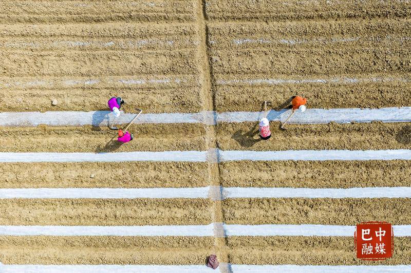 平昌县驷马镇双鹿社区村民忙着起厢覆膜