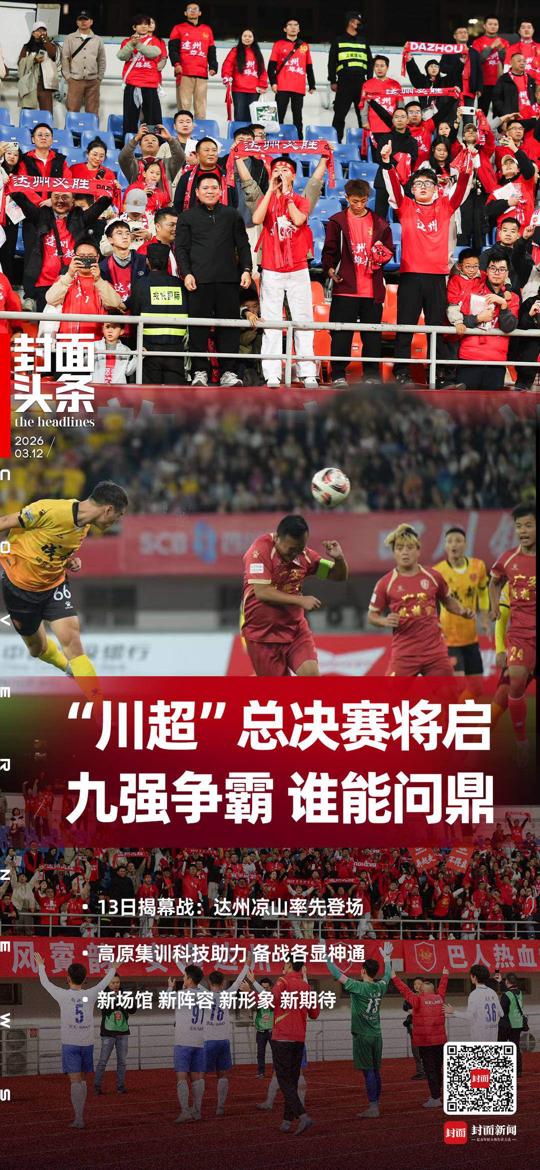 从成都平原到川南丘陵,从凉山州到川北峻岭,九路豪杰厉兵秣马,枕戈待旦。这些城市英雄,带着一整个冬天的积蓄与锤炼,怀揣着捧杯的梦想,即将在绿茵场上见真章。这是一个关于汗水、意志与荣耀的故事,每一次奔跑、每一次拼抢、每一次射门,都在为川超画卷添上浓墨重彩的一笔。