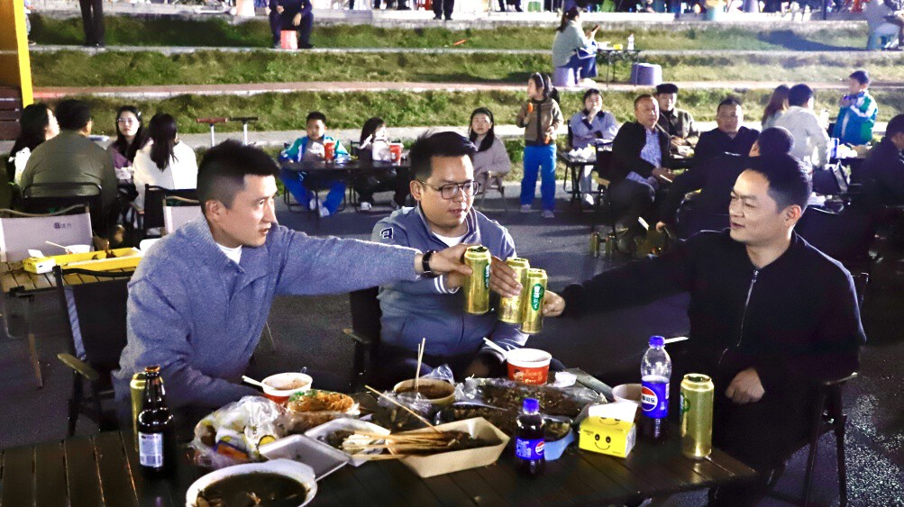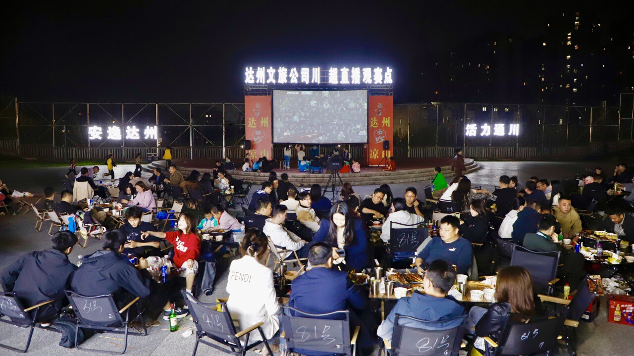 夜幕降临,华灯初上,哈罗街区运动公园二期内早已人头攒动、氛围拉满。作为通川区“川超”第二观赛点之一,这里提前调试好大屏幕,清晰的赛事画面、立体的现场音效,将赛场内的紧张与激烈完美传递给每一位观赛市民。街区内,特色小吃摊香气四溢,烧烤、奶茶、火锅等多元业态同步营业,市民们或围坐餐桌,一手撸串一手举杯,目光紧紧锁定赛场动态,形成了“观赛+休闲+消费”的沉浸式体验,尽显城市烟火气与青春活力。