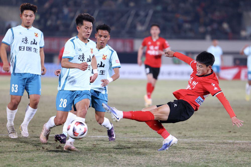 场上的气质同样鲜明。凉山队阵中多名彝族球员身体强壮、冲击力十足,达州队也不甘示弱,逼抢、推进、对抗都透着一股硬朗。看台上的呐喊与场上的节奏交织在一起,让现场所有人血脉偾张。