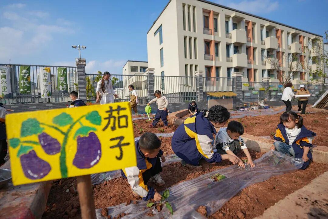 近日,大英县郪江幼儿园开展春耕节种植活动。小朋友们在老师的带领下认识常见蔬菜、花草种子,并学习松土、播种等技能。全媒体首席记者 刘昌松/摄