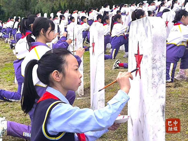 在无名烈士纪念园,大家手持毛笔,小心翼翼为墓碑上的五角星描红,一笔一画间,将英烈精神深深刻进心底。通江县实验小学学生陈星桥认真地描摹着每一笔,“这些无名烈士没有留下名字,却为我们留下了幸福的生活,我要把五角星描得更红,让他们知道,我们没有忘记他们。我要珍惜当下、刻苦学习,立志成长为对祖国、对人民有用的人,不负先烈,不负时代。”